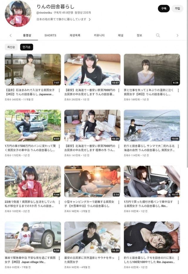 시골에서 생활하는 VLOG를 올리며 50만 구독자를 달성한 일본 유튜버가 있는데