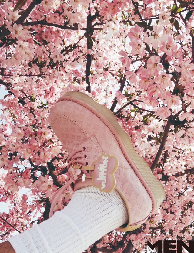 - 굽이치는 밑창과 구름 모양 태그가 재미있는 핑크 LV 웨이브 슈즈 Louis Vuitton, 흰 양말 에디터 소장품