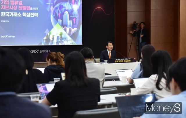 이번 기자간담회는 정 이사장의 취임 100일을 맞이해 '23년 시장 주요성과'와 '최근 자본시장 현황', '23년 시장 주요 성과' 등을 발표하기 위해 마련된 자리다.