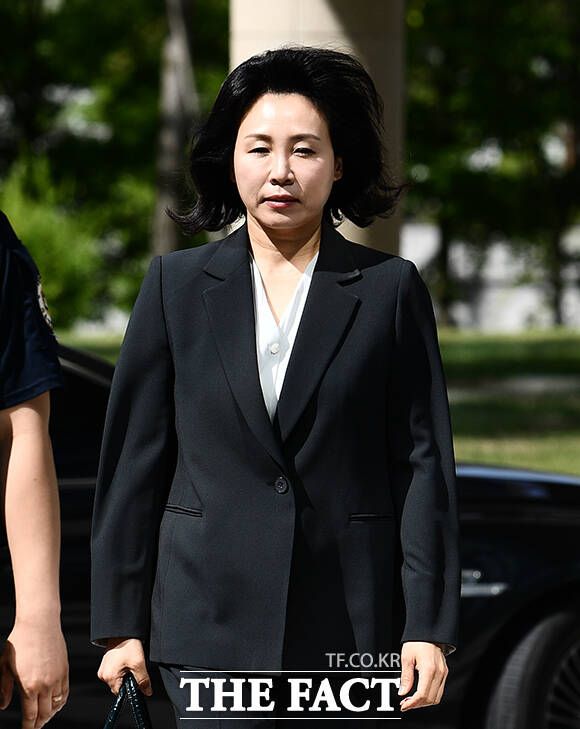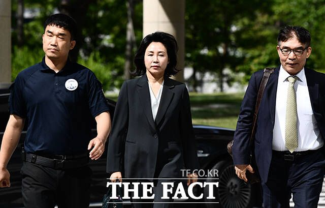 [더팩트ㅣ수원=박헌우 기자] '공직선거법 위반' 혐의를 받는 이재명 더불어민주당 대표 배우자 김혜경 씨(가운데)가 27일 오전 경기 수원시 수원지방법원에서 열린 공판에 출석하고 있다.