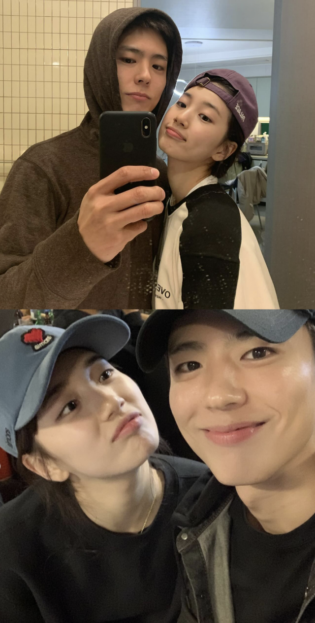 사진 속 박보검은 수지와 서로 볼을 맞대거나 나란히 서서 커플 같은 모습을 보였다. 서로를 카메라에 담으며 마치 ‘여친샷’, ‘남친샷’ 같은 케미도 발산했다.