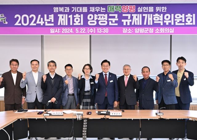 양평군 규제개혁위원회는 법률·환경·기업·행정 분야 등 다양한 분야의 전문가 등 포함, 총 11명으로 구성됐으며 규제의 신설·강화, 규제의 등록·공표에 관한 사항 등을 심의 및 지역 숙원 규제와 같은 주요 사안에도 자문 및 지원 기능을 수행할 예정이다.