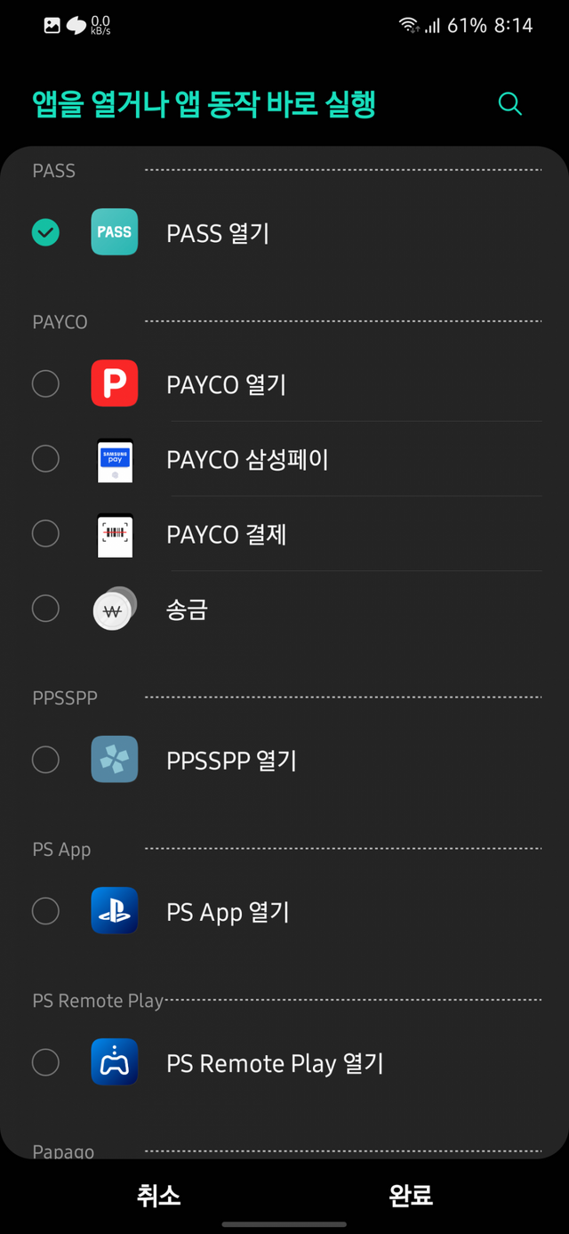 6. 앱을 열거나 앱 동작 바로 실행을 선택한다