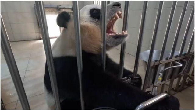 푸바오가 ‘접객’에 동원되고 탈모 증상까지 나타났다는 의혹이 불거진 가운데 공개된 영상에 한국 누리꾼들은 예민한 반응을 보였다.