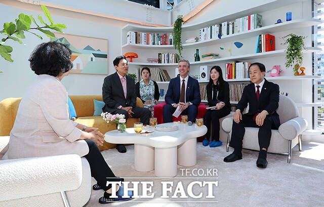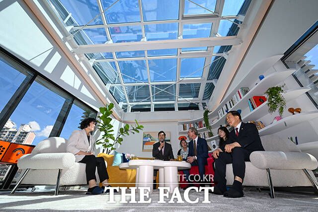 [더팩트ㅣ박헌우 기자] 한강대교 전망호텔 '스카이 스위트(Sky Suite)'공개 행사가 28일 오전 서울 용산구 한강대교 상부 전망호텔에서 열린 가운데 내부 모습이 공개되고 있다.