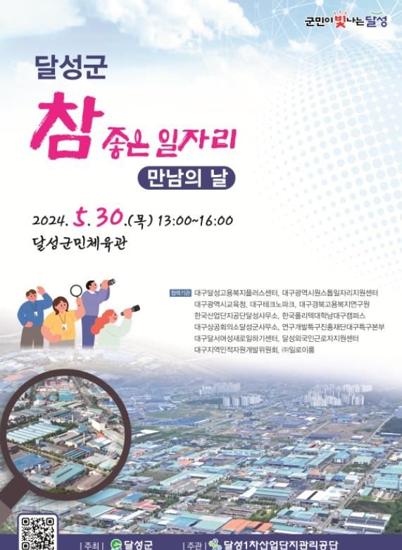 [파이낸셜경제=김예빈 기자] 달성군은 오는 30일 달성군민체육관에서 2024년 달성군 취업박람회 '달성군 참 좋은 일자리 만남의 날'을 개최한다.