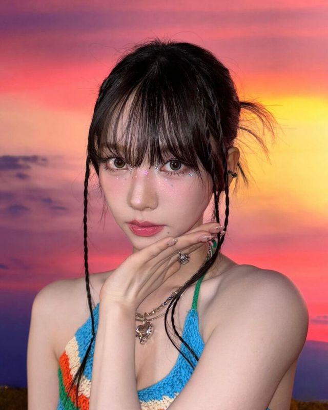 #SunkissedMakeUp #SunsetBlush를 위한 수식으로는 짙은 블러쉬 + 은은한 광채를 내뿜는 하이라이터의 조합이 필요합니다. 텍사스 포트워스에서 열린 지난 아이브(IVE)의 월드투어 콘서트에서 짙은 오렌지 레드 블러쉬로 강렬한 카우걸 콘셉트를 연출한 장원영(WONYOUNG)은 볼부터 콧잔등까지 이어지는 블러쉬에 주끈깨를 더해 더욱 리얼하게 연출했습니다. 양 볼에 주근깨를 추가한 대신 하이라이터는 깔끔하게 미간과 코끝에만 더해줘 윤곽을 살려주었습니다.
