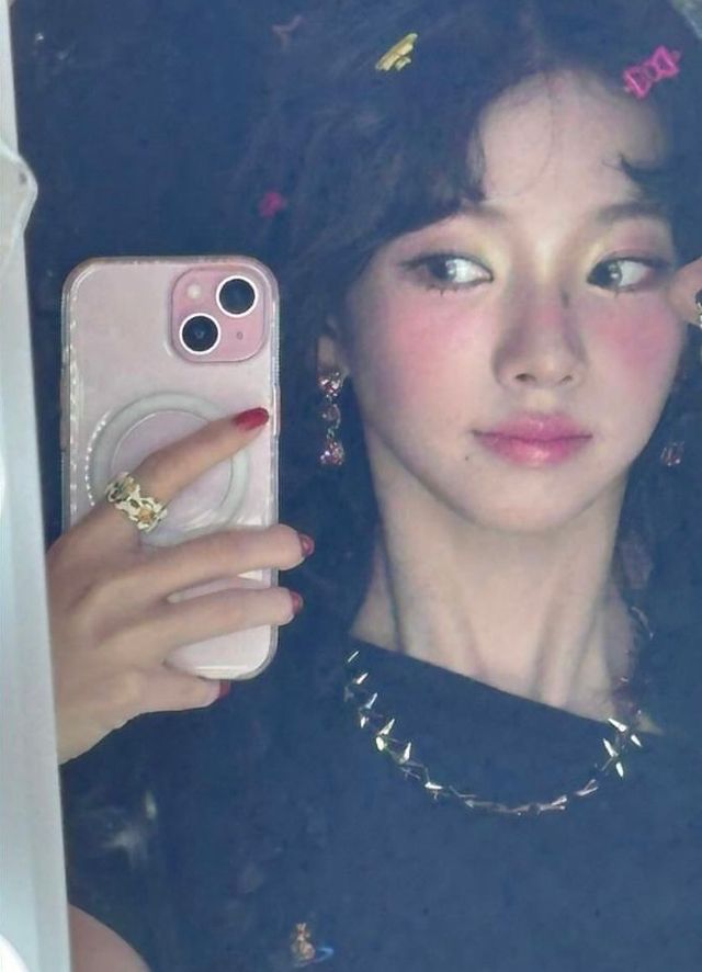 에스파(aespa) 카리나(KARINA)는 핑크빛에 가까운 블러쉬와 함께 반짝이는 파츠를 활용해 더욱 발랄한 분위기를 완성했습니다. 하이라이터는 자칫 잘못하면 피부를 지저분하게 연출할 수 있기 때문에 부위와 범위를 설정하는 것이 가장 중요한데요. 파츠를 더해준 만큼 치크에 하이라이터는 생략하고 옐로 컬러 섀도를 사용해 눈 앞머리와 미간을 밝혀주었습니다. 다가오는 페스티벌 시즌에 활용하기도 좋겠죠?