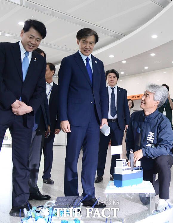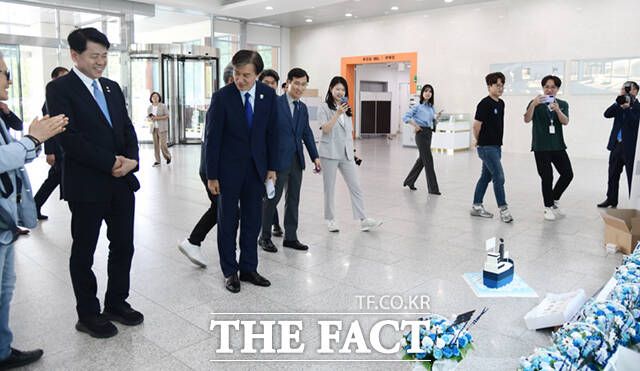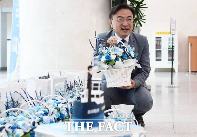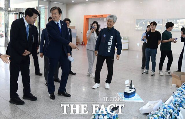[더팩트ㅣ국회=이새롬 기자] 제22대 국회 개원일인 30일 오전 서울 여의도 국회 소통관에서 조국 조국혁신당 대표가 지지자들이 마련한 등원 선물을 바라보고 있다.