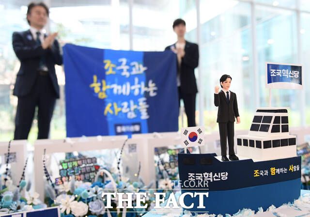 제22대 국회 개원일인 30일 오전 서울 여의도 국회 소통관에서 조국 조국혁신당 대표가 지지자들이 마련한 등원 선물을 바라보고 있다. /국회=이새롬 기자