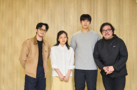 배우 변요한, 고아성, 문상민, 이종필 감독이 영화 '파반느' 대본리딩에서 포즈를 취하고 있다. [사진=플러스엠 엔터테인먼트 | 제작: 더램프㈜]