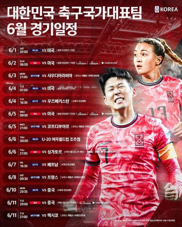 지난 30일 대한축구협회가 공식 SNS를 통해 대한민국 축구국가대표팀의 6월 경기 일정을 공개했다.