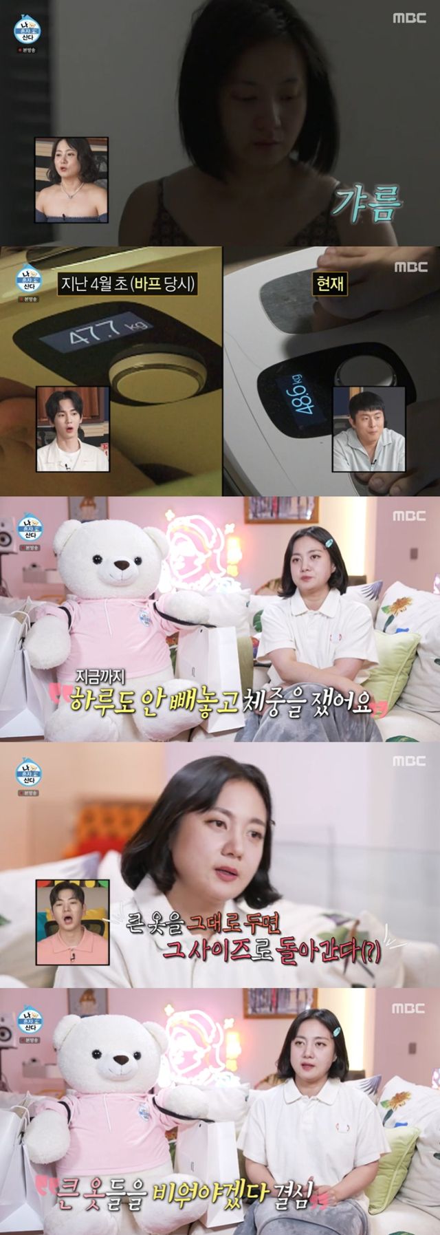 박나래는 일어나자마자 바로 체중계로 향해 몸무게를 쟀다. 박나래는 “1월 1일 바디 프로필을 하기로 한 후로 하루도 안 빼놓고 몸무게를 쟀다. 내 몸의 데이터베이스를 계속 쌓는 것이다. 먹방하고 다음 날도 쟀다. 정확히 먹방 후 3kg가 쪘다”고 말했다.