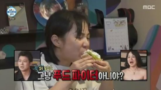 박나래는 허겁지겁 샌드위치를 먹기 시작했다.
