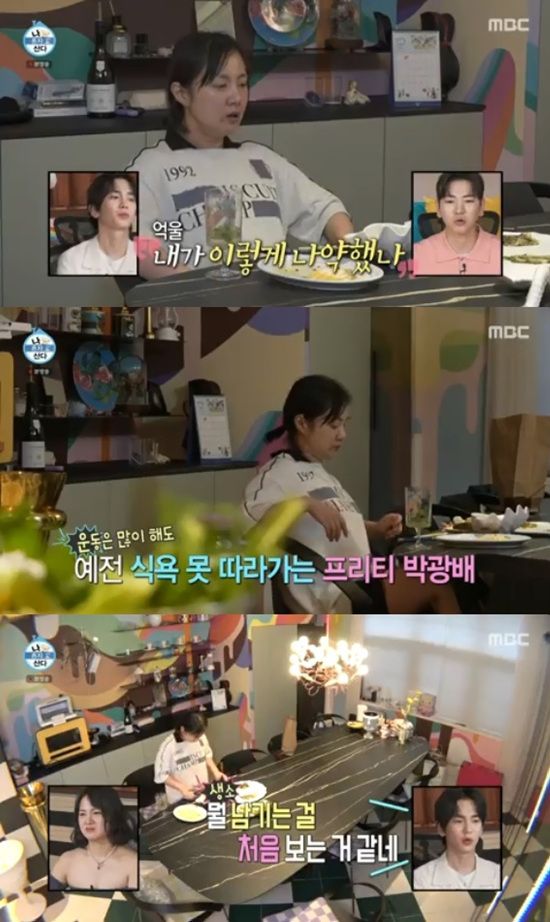 박나래는 자신의 모습을 보고 전현무가 "푸드파이터인 줄 알았다"고 하자 "이렇게 먹으면 살 뺄 수 있다. 대신 운동을 주 6일을 해야 한다"고 했다.