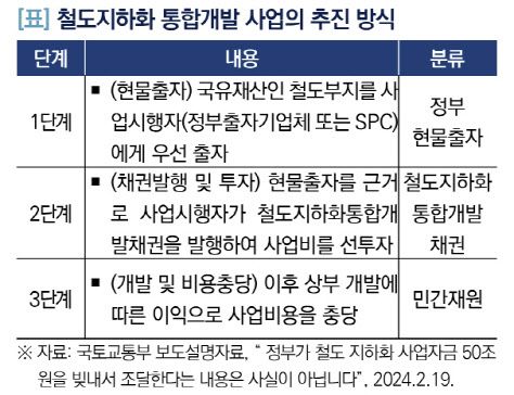 이 법안의 골자는 지상의 철도부지 개발 이익을 지하화 공사비용으로 활용하겠다는 데 있습니다. ‘미래 있을 부동산 개발 이익을 담보로 현재 필요한 공사 비용을 충당한다’는 점에서 프로젝트파이낸싱(PF)와도 비슷해 보입니다.