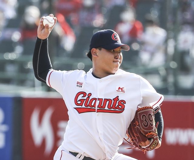 2020년 8월 16일 부산 사직구장에서 열린 프로야구 키움 히어로즈 - 롯데 자이언츠 경기. 1회 초 롯데 선발투수 서준원이 힘차게 공을 던지고 있다. / 연합뉴스
