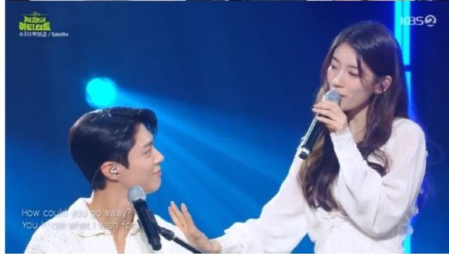 무대 후 박보검은 “이곳에서 처음으로 ‘뮤직뱅크’ MC를 진행했다. 오랜만에 보니 감회가 새로웠다”며 “유희열 선배님이 ‘스케치북’ 하실 때 잠깐 나왔다가 바로 군대를 가게 됐다. 그땐 (팬데믹으로) 관객분들이 아무도 안 계셨는데 많이 계시니 기분이 정말 좋다. 반겨주셔서 감사하다”고 인사를 건넸다. 수지 역시 “음악방송 때문에 여기 많이 왔어서 아주 반갑다. 2022년 ‘스케치북’ 나온 게 마지막이더라. 오랜만에 나와 좋다”고 맞장구쳤다.