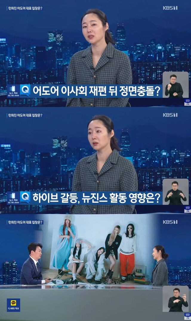 지난 31일, 민 대표는 2차 긴급 기자회견을 열었고 같은 날 KBS '뉴스9'에 출연해 경영권 탈취와 관련, "뉴진스 안 데려간다"고 같은 입장을 강조하며 하이브에 화해의 손길을 내밀었다.