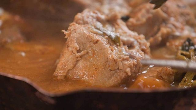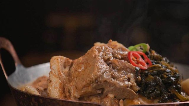 준비가 됐다면 압력솥 뚜껑을 닫고 끓이다가 추가 울리기 시작하면 약불로 줄이고 30분 끓인다. 끝으로 들깻가루, 후추를 취향껏 뿌리고 깻잎으로 장식해 주면 완성이다.