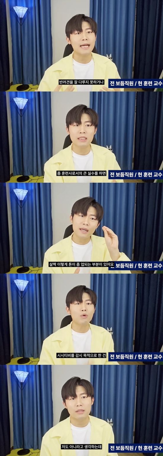 재직 당시 자체적으로 1시간 일찍 출근하고 1시간 늦게 퇴근했다는 독티처는 "행복해서 그랬다. 하물며 우리가 배우는 시간까지도 근무로 쳐줬다"면서 "그런 과정 중에 당시 대표님께서 반려견을 잘 다루지 못하거나 훈련사로서의 큰 실수를 하면 정말 아주 가끔, 내가 있는 동안 한 번 봤고 저도 한 번 그랬는데 살짝 톤이 업 되는 부분이 있다"고 회상했다.