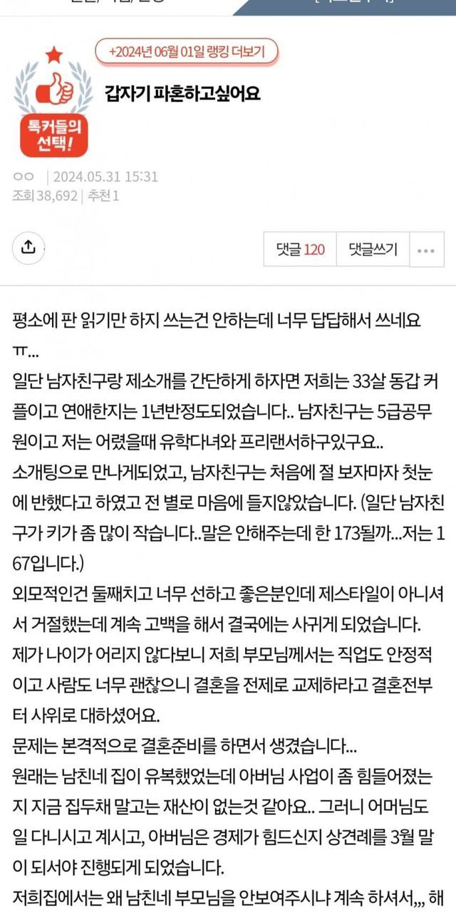 "파혼"은 약혼을 깨고 결혼을 취소하는 것을 의미합니다. 이는 보통 두 사람 사이의 심각한 문제가 있음을 내포하며, 감정적으로도 매우 중요한 사건입니다. 이러한 키워드는 결혼이나 연애에 관심이 있는 사람들에게 특히 주목받을 수 있습니다.