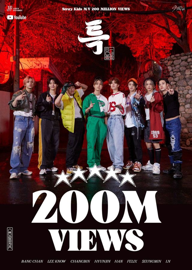 스트레이 키즈가 2023년 6월 2일 발매한 정규 3집 '★★★★★ (5-STAR)'(파이브스타)의 타이틀곡 '특' 뮤비는 지난 2일 오후 유튜브 조회 수 2억 건을 돌파했다. 이로써 스트레이 키즈는 '神메뉴'(신메뉴), 'Back Door'(백 도어), '소리꾼', 'MANIAC'(매니악)에 이어 '특'까지 총 5편의 뮤비를 2억 뷰 반열에 올렸다.