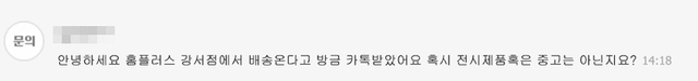 한 구매자는 네이버쇼핑을 통해 구매를 했는데 홈플러스 강서점서 배송이 진행된다는 알림을 받았다. 그는 ‘해당 제품이 구매처서 바로 오는 게 아니라 대형마트서 오는데 전시제품이나 중고제품이 아니냐’는 내용의 문의글을 남겼다.