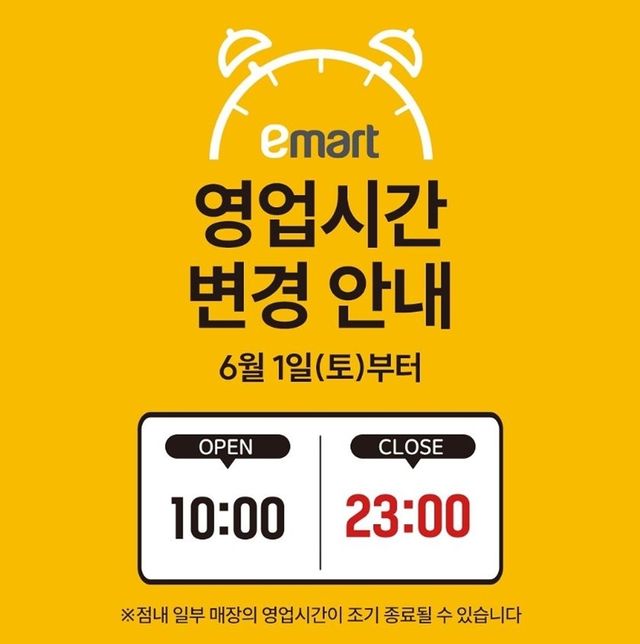 이마트가 6월 1일부터 전국 68개 점포의 영업 종료 시각을 오후 10시에서 오후 11시로 1시간 연장한다.