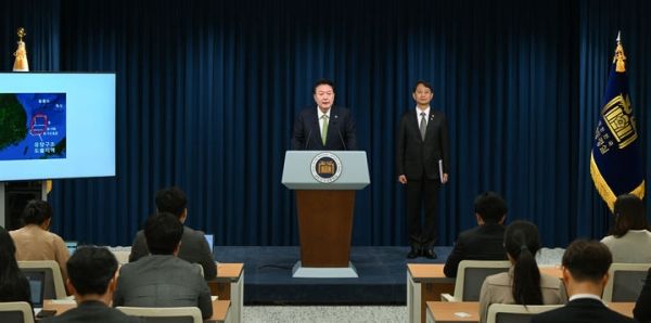 윤 대통령은 이날 오전 서울 용산 대통령실에서 직접 '국정 브리핑'에 나섰다. 윤 대통령은 "우리 정부에 들어와서 지난해인 2023년 2월, 동해가스전 주변에 더 많은 석유가스전이 존재할 가능성이 높다는 판단 하에 세계 최고 수준의 심해 기술 평가 전문기업인 미국의 엑트지오사에 물리탐사 심층분석을 맡겼다"고 밝혔다.