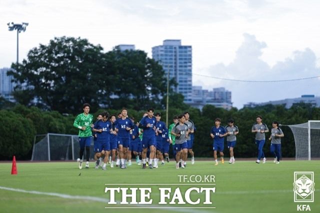 김도훈 임시 감독이 이끄는 한국 축구대표팀은 3일 오후 8시부터 싱가포르 비샨에 자리한 비샨 스타디움에서 2026 국제축구연맹(FIFA) 북중미 월드컵 아시아 2차 예선 C조 5차전 싱가포르와 맞대결을 앞두고 첫 현지 훈련을 순조롭게 소화했다.