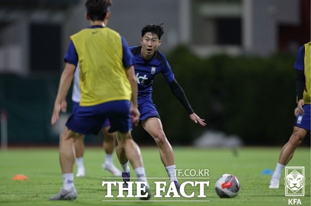 '캡틴' 손흥민(가운데)의 싱가포르 첫 훈련./싱가포르=KFA(정재훈)