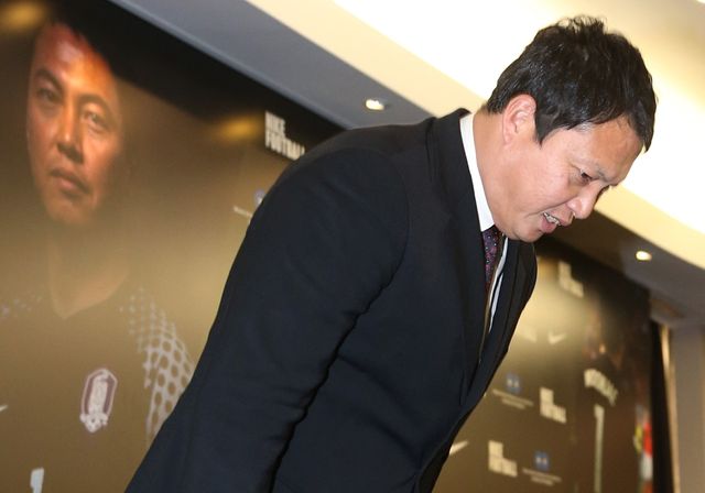 골키퍼 이운재 선수가 2012년 12월 17일 오후 서울 강남구 라마다서울 호텔에서 열린 은퇴 기자회견에서 고개 숙여 인사를 하고 있다. / 뉴스1