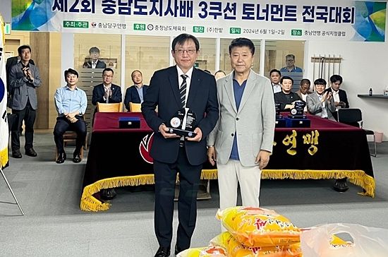 이날 행사에선 충남당구연맹 강은성 코치가 충남도지사 표창을, 충남당구연맹 인재형 부회장이 충남체육회장 표창을 받았다. [황국성 MK빌리어드뉴스 기자]