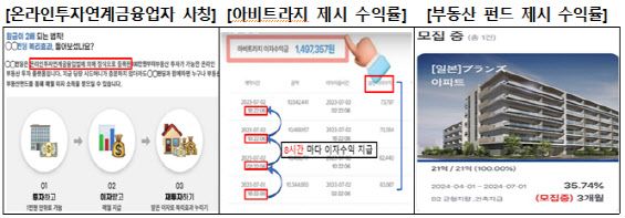 금감원에 따르면, 이들은 유튜브·블로그 등에 영상 및 광고 글을 올려 투자자 스스로 불법 업체 홈페이지를 방문해 투자하도록 현혹한다. 투자자 신뢰를 얻기 위해 실제 등록된 온라인 투자연계 금융업자(P2P 업체)의 공시 자료나 투자 후기, 유명인 사진 등을 도용한다.