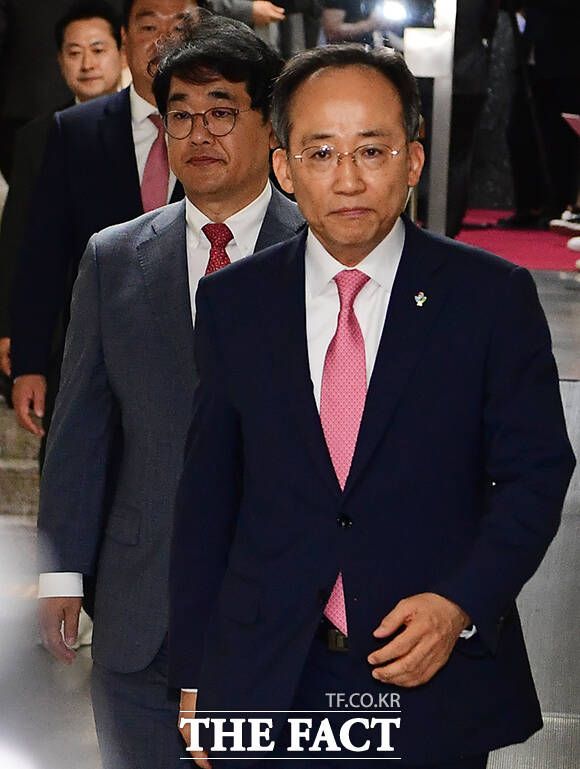 추경호 국민의힘 원내대표가 5일 오전 서울 여의도 국회에서 열린 의원총회에 참석하고 있다. /국회=배정한 기자