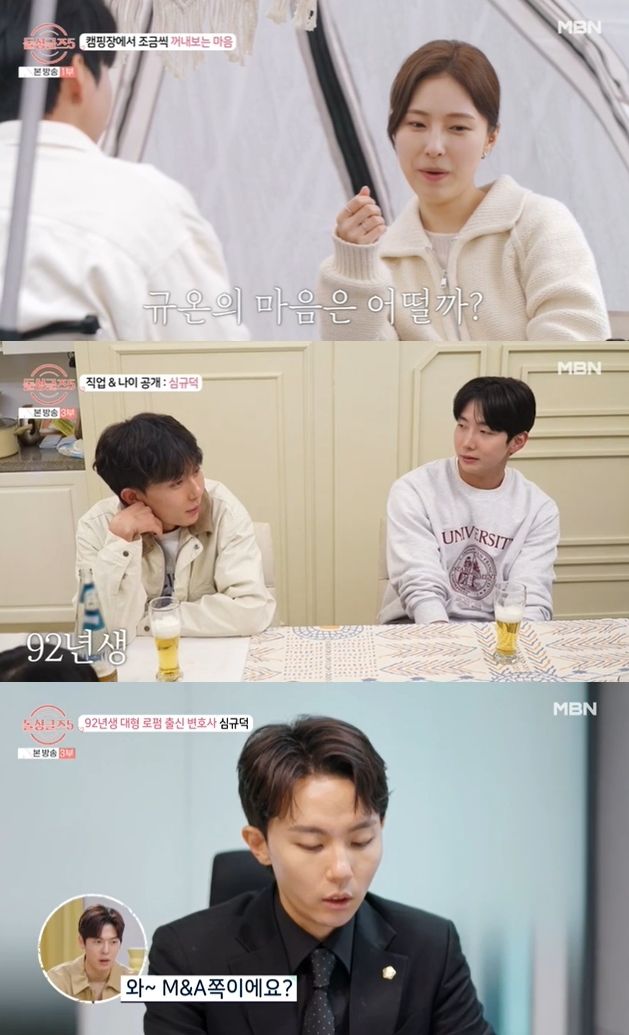 한편 돌싱남녀들은 이날 대망의 직업과 나이를 공개했다. 첫 번째 타자로 나선 심규덕은 "92년생, 만으로 서른 두 살이다"며 나이를 밝혔다.