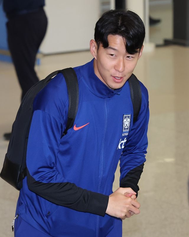 대한민국 축구 국가대표팀 손흥민이 7일 오전 인천국제공항 제2터미널을 통해 귀국하며 인사하고 있다. / 뉴스1