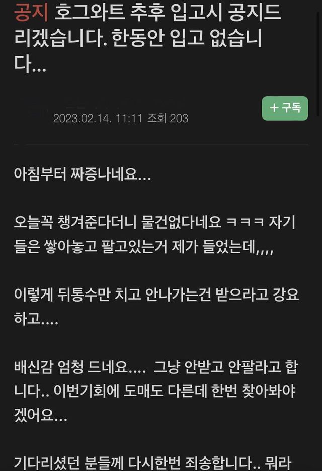 잘나가는건 자기들이 쌓아놓고 팔고 안나가는건 가져가라고 떠넘기는 행태에 개빡침