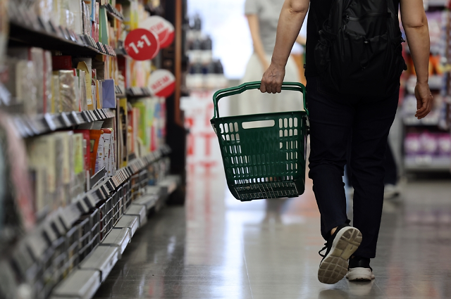 韩国某家大型超市购物的市民。【图片来源 韩联社】