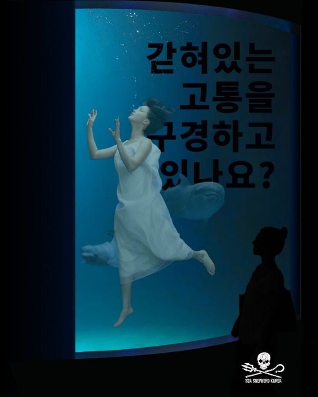 제가 처음 관심을 가졌던 환경 문제는 땅에 있는 동물들에 관한 것이었어요. ‘이 땅에 같이 발을 디디고 있는 너와 나는 같은 존재야’라고 느꼈거든요. 그런데 어느 순간, 제가 물속의 생명에게는 관심이 없다는 걸 깨달았어요. 목소리를 낼 수 없는, 아니, 우리가 들을 수 없는 거겠죠? 분명 목소리를 엄청나게 내고 있을 텐데 말이에요. 제가 들을 수 없는 목소리에 더 관심을 가져야겠다는 생각이 들었어요. 그래서 시셰퍼드 활동을 시작했고요. 어항에 손가락을 살짝 넣으면, 그 조그만 파동에도 생명들이 엄청난 반응을 하잖아요. 바다에서도 우리가 확 다가가려고 하면 피하고요. 이들도 다 ‘느끼는 존재’인데, 우리가 ‘이건 생명이 아니라 그냥 먹는 것’ 정도로 생각하는 건 아닐까 싶었어요.
