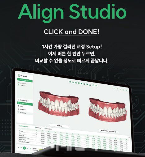 얼라인 스튜디오는 AI 기술을 적용해 치아 스캔 데이터를 자동 처리하고, CBCT(Cone Beam CT) 데이터에서 치근을 포함한 치아를 분리해 3차원(3D) 뷰를 보여준다. 이를 통해 환자 상담 또는 투명 교정 장치 제작을 위한 파일을 제공한다. 기존에 수일이 걸리거나 몇 시간씩 걸리던 교정 셋업을 얼라인스튜디오를 이용하면 2분 만에 끝낼 수 있다.