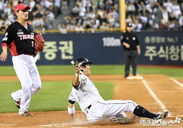 KIA가 5회초 김도영의 솔로포와 소크라테스 브리토의 1타점 3루타로 다시 승부를 뒤집었고, 7회초에 1점을 더 보태면서 5-3으로 달아났다. 하지만 두산은 7회말 허경민의 1타점 적시타로 추격한 데 이어 2사 1·3루에서 전상현의 폭투 때 3루주자 허경민의 득점으로 5-5 균형을 맞췄다. 경기 개시 이후 네 번째 동점이었다.