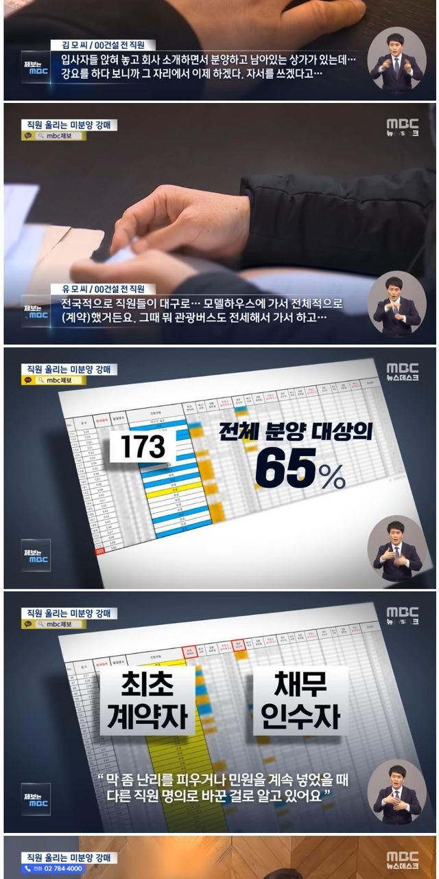 건설사가 시공한 상가 물량 중 65%를 회사 직원들에게 떠넘김