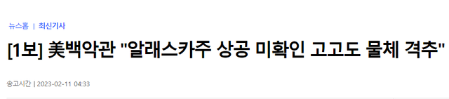 백악관은 알래스카 주 상공의 미확인 고고도 물체를 격추했다며
