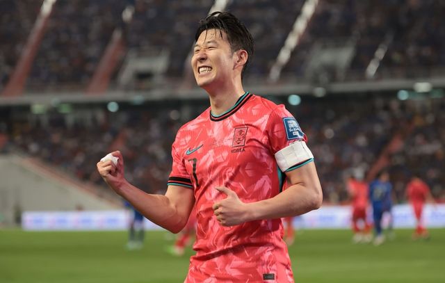 2024년 3월 26일 태국 방콕 라자망갈라 스타디움에서 열린 2026 북중미 월드컵 아시아 지역 2차 예선 C조 4차전 한국과 태국의 경기에서 후반전 추가 골을 넣은 손흥민이 세리머니를 하고 있다. / 연합뉴스