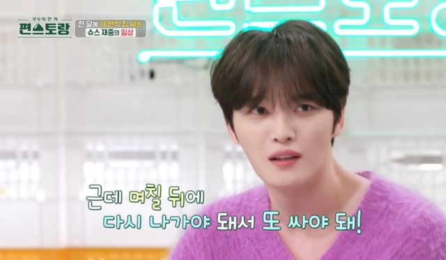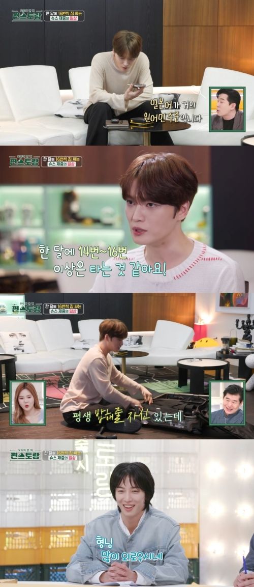 스튜디오의 김재중은 "짐 싸기가 너무 싫다. 한국 오면 짐을 풀어야 된다. 그런데 며칠 뒤에 다시 나가야 되니까 또 짐을 싸야 된다"고 고충을 토로하며 한숨을 쉬었다.