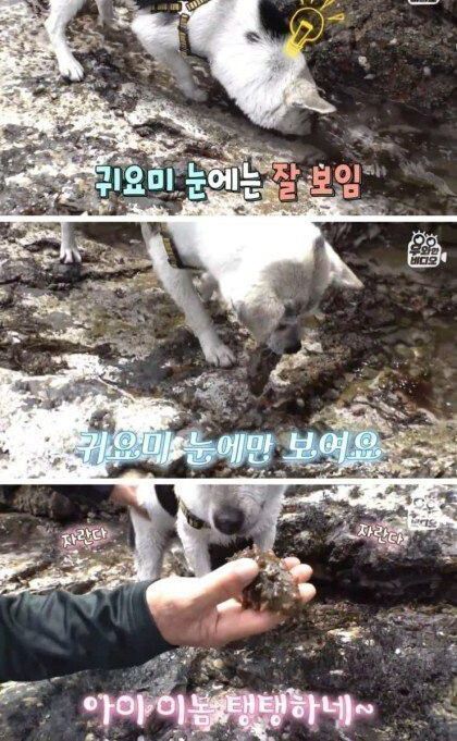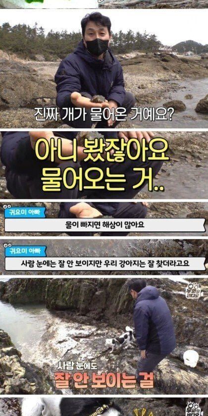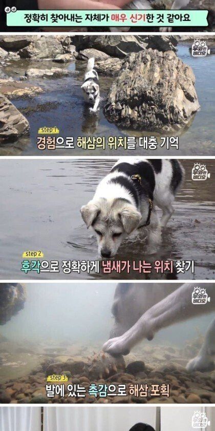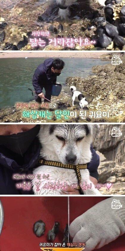 바다에서 해삼 집어오는 댕댕이 …