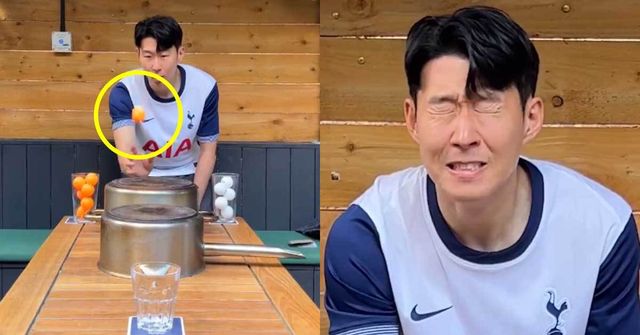 동료들과 너무나 즐거운 현장 속에서도 손흥민은 탁구공 챌린지에 실패하자 아쉬운 듯 귀엽게 얼굴을 찌푸리기도 했다.