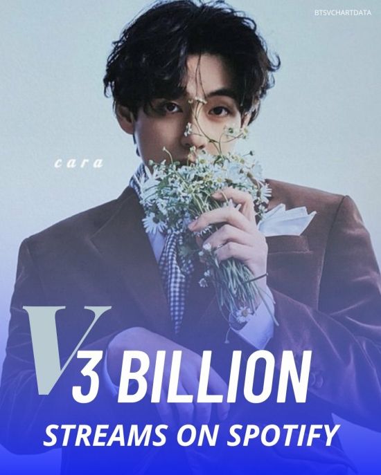 스포티파이에 따르면, 방탄소년단(BTS) 뷔가 최근 개인 페이지 도합 30억 스트리밍을 돌파했다.
